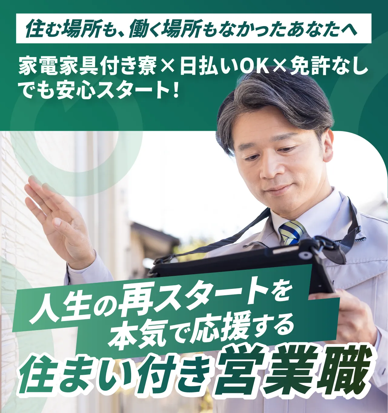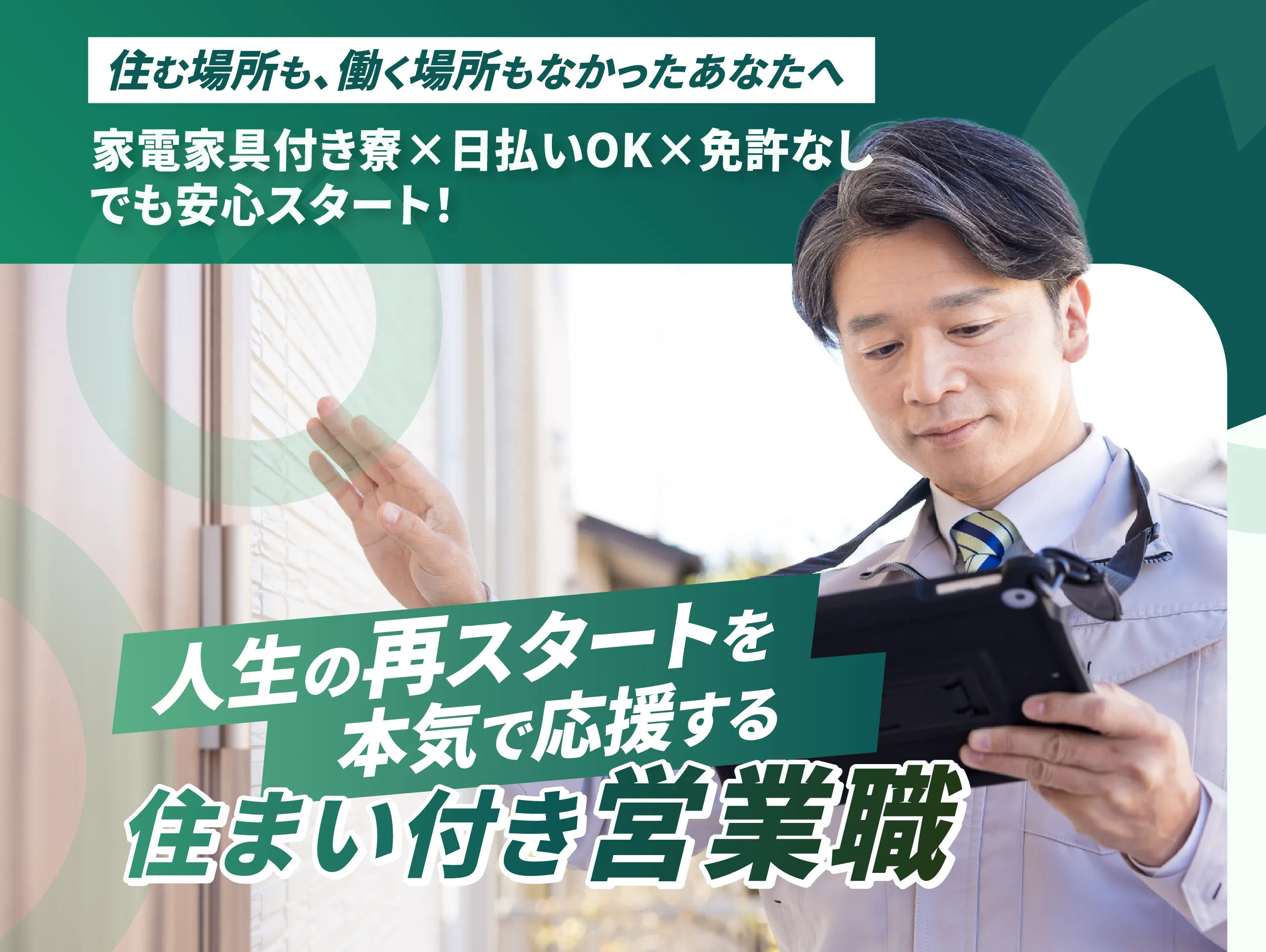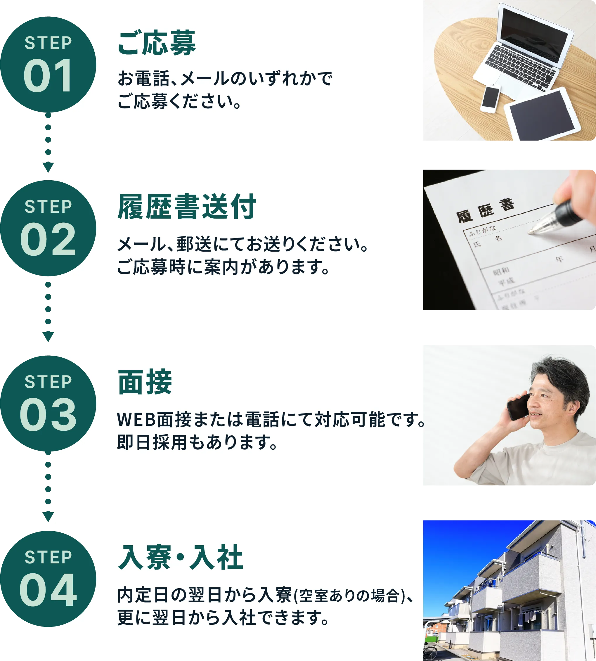 日払い制度、個室寮、月末締め翌15日払いの給与体制で安心です。