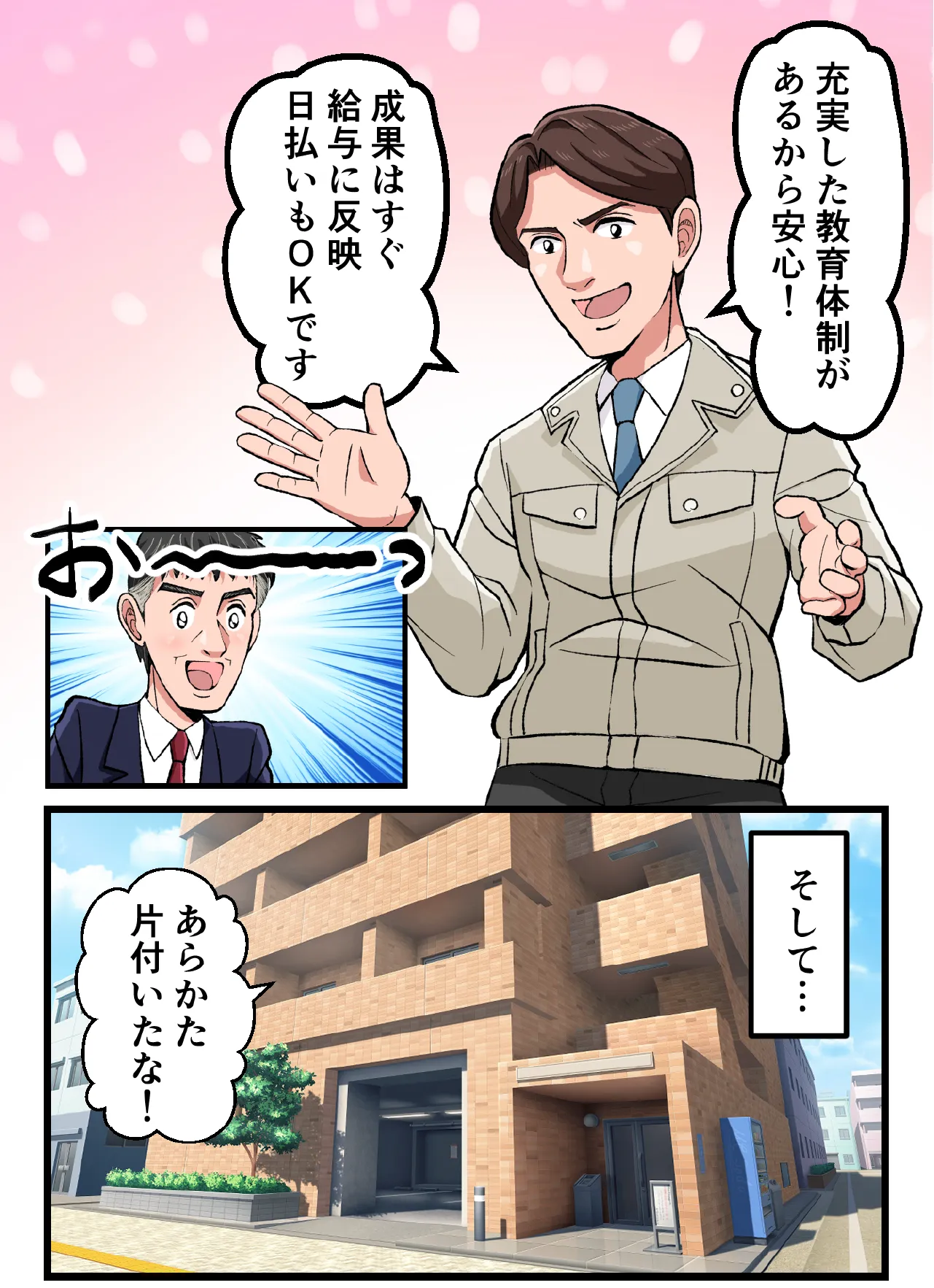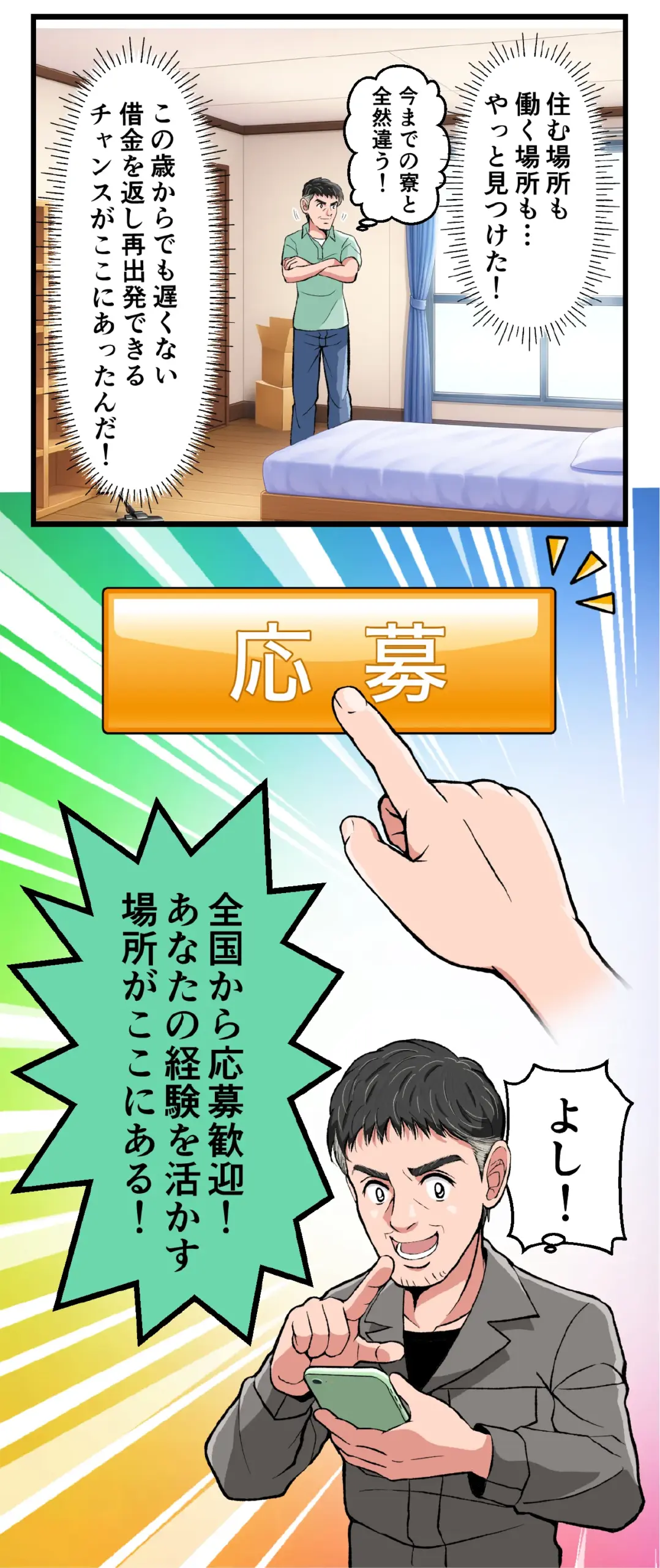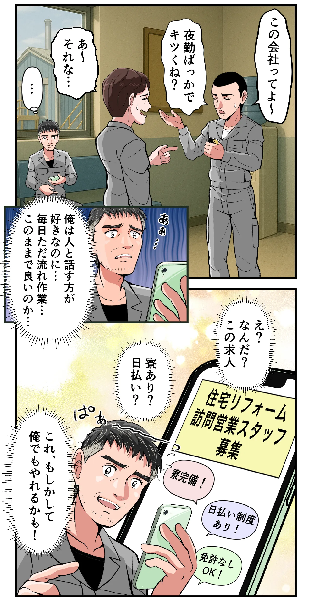 日払い制度、個室寮、月末締め翌15日払いの給与体制で安心です。
