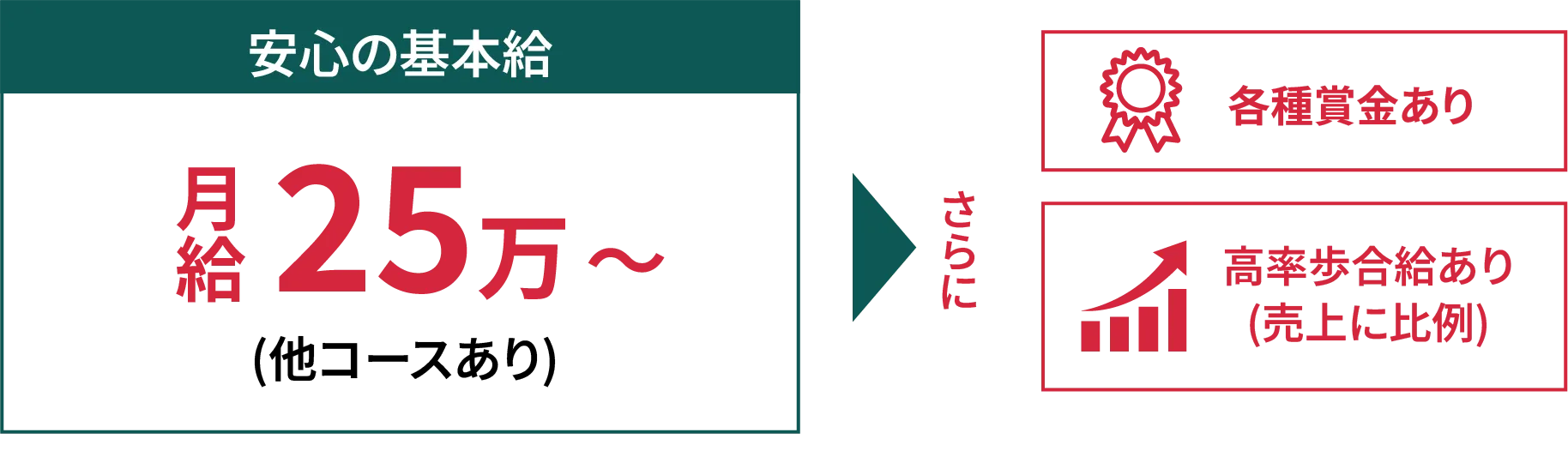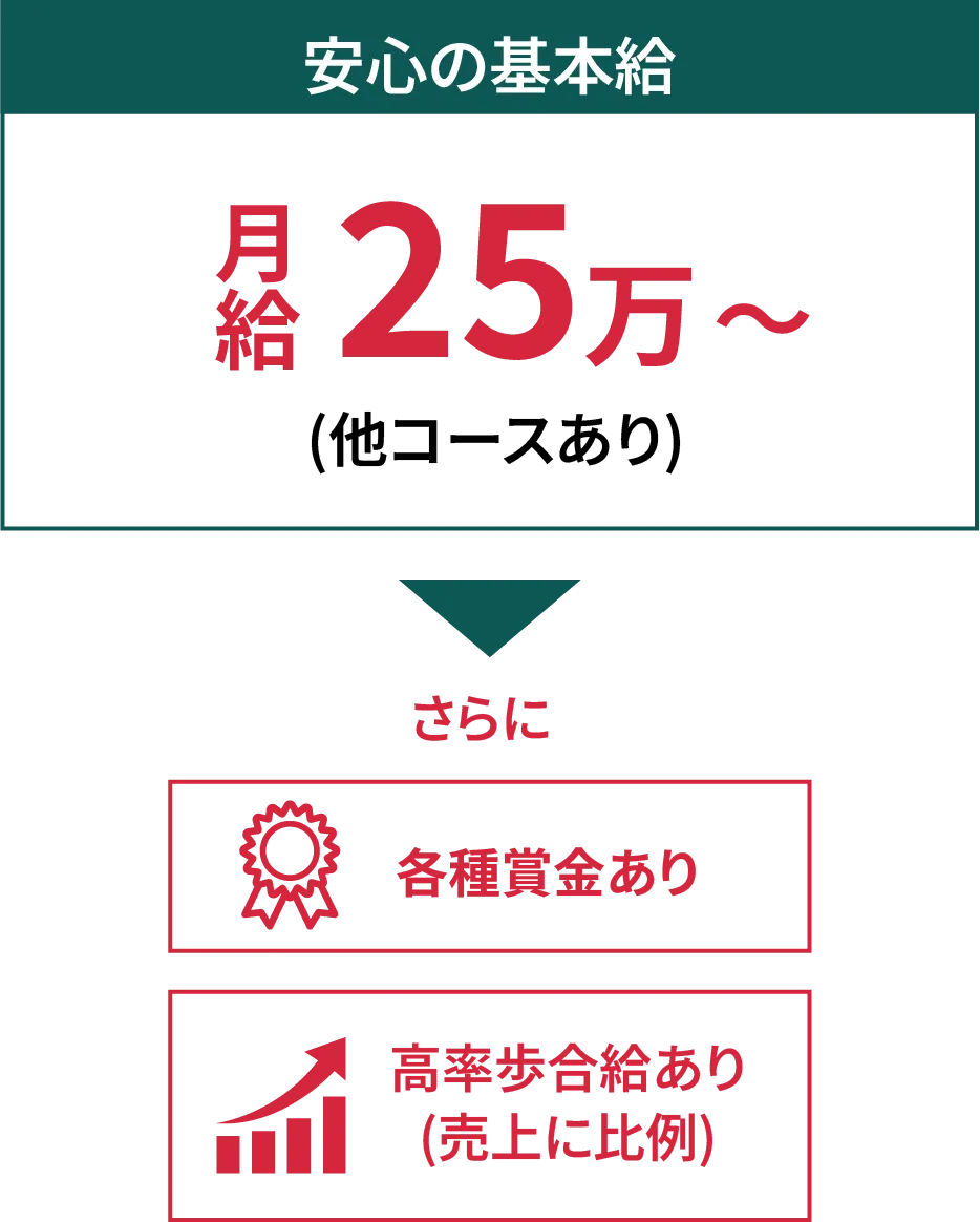 基本給 250,000円+歩合給+各種賞金 日払い3,000円/日